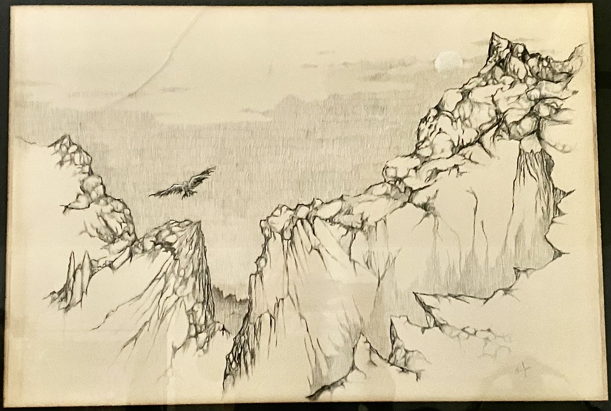 Here’s a small sampling of my artwork separated by asterisks into a few categories (some of these are—or will be—for sale, some not). As I said elsewhere on this site, I have a BFA in Fine Art, and went to university intending to become an art teacher because of the influence of my high school instructor and (later) good friend Charlie Wanda and college professors/mentors like Bob Fabe and Patricia Renick… at least until I decided in my senior year I’d rather be a full-time musician. (Yes, I was also writing at the time, but had only sold a few stories to semi-pro markets. My first professional sale and my switch to thinking of myself primarily as a writer was still in the future.) Click on the images for larger versions and some commentary.
